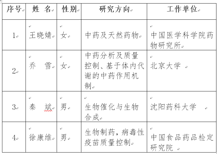 中国科协“青年人才托举工程” 药学专业2016-2018年度入选名单